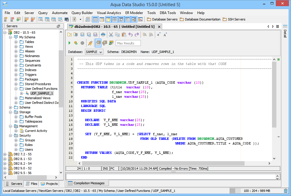 Creating and Executing a Sample Stored Procedure in Aqua Data Studio (DB2 UDB)