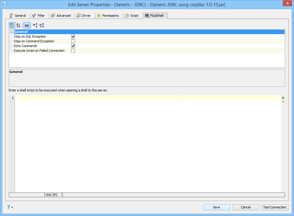 Edit Shell Scripts in Server Properties in Aqua Data Studio: