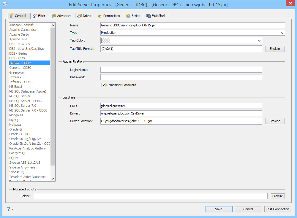 Edit the Drivers Properties to use Driver Parameters in Aqua Data Studio: