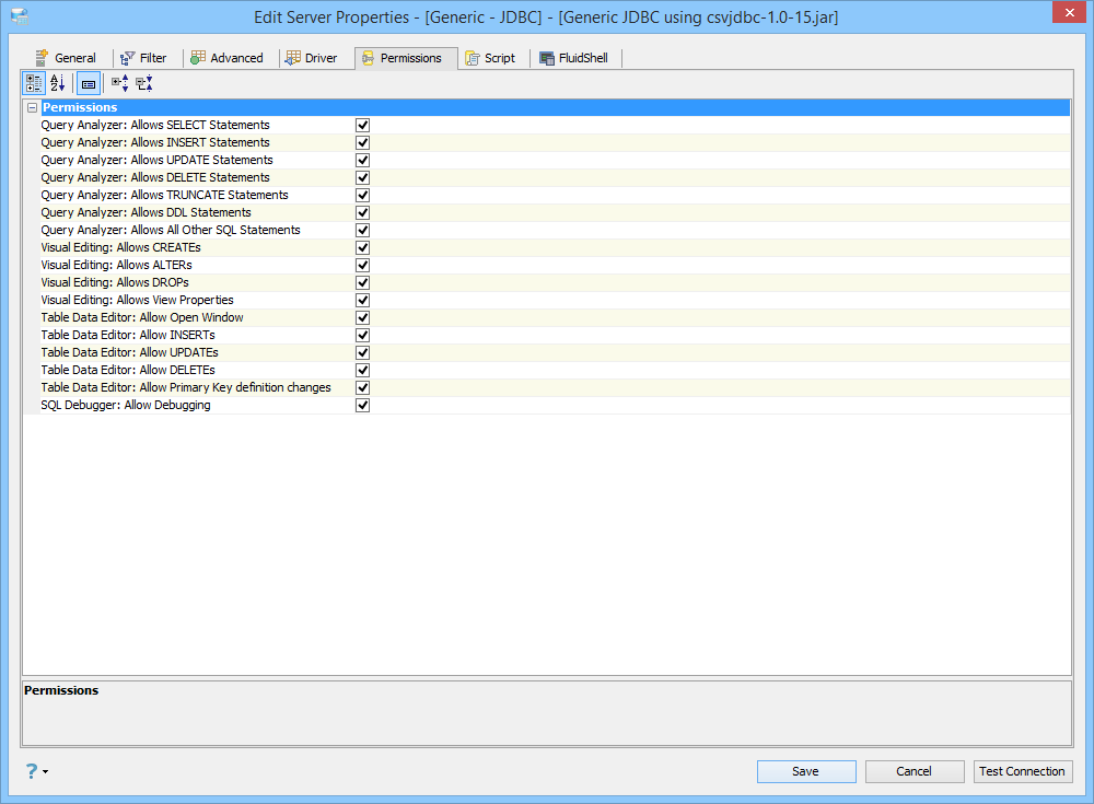 Edit the Permissions in Server Properties in Aqua Data Studio: