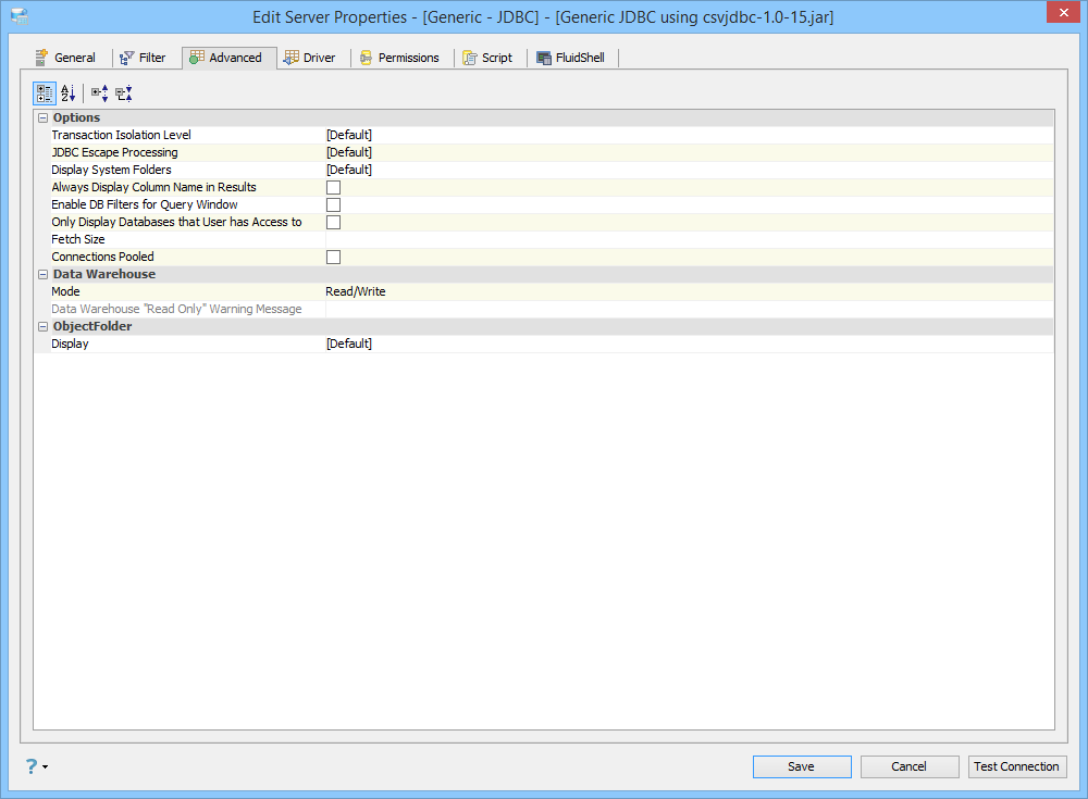 Edit the Server Properties to use Advanced Properties in Aqua Data Studio:
