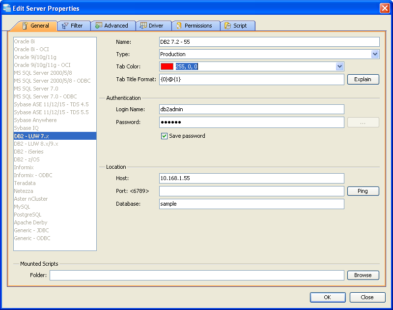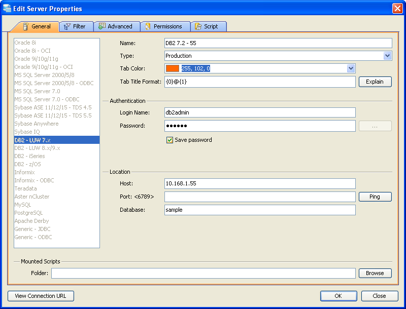Edit Scripts in Server Properties in Aqua Data Studio: