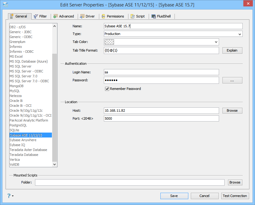 Edit Scripts in Server Properties in Aqua Data Studio: