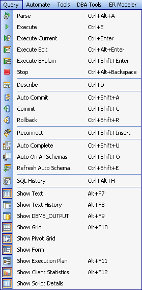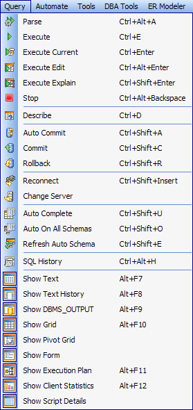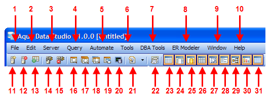 Application Menus and Tooblar Below is a list of all the available menus within the main application toolbar. Most of what Aqua Data Studio is capable of can be found in the main application toolbar and menus. When Aqua Data Studio is launched, the main application window and toolbars appear, with the Schema or Files Browser in focus depending on what was being viewed when the application was last exited. Information on the Query Analyzer Toolbar is available here.