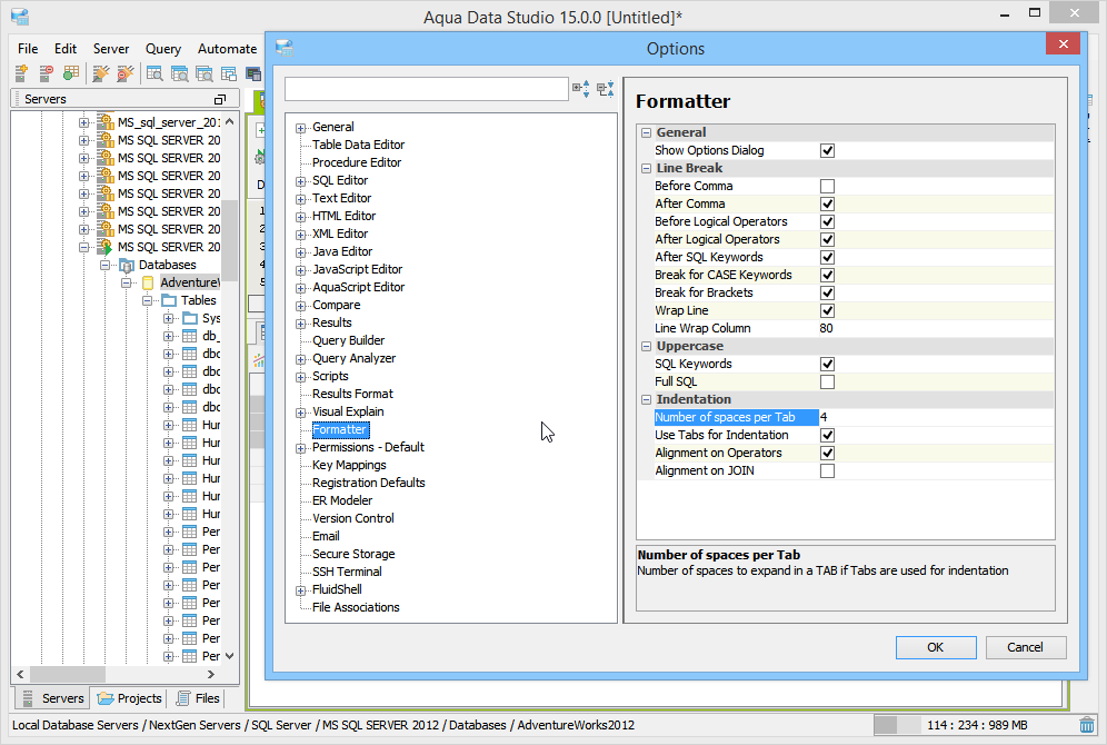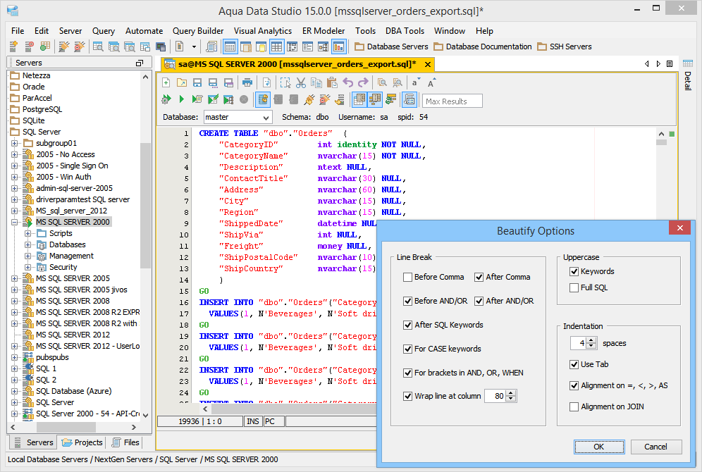 Aqua Data Studio provides an SQL formatter which may be easily accessed from the Query Analyzer.