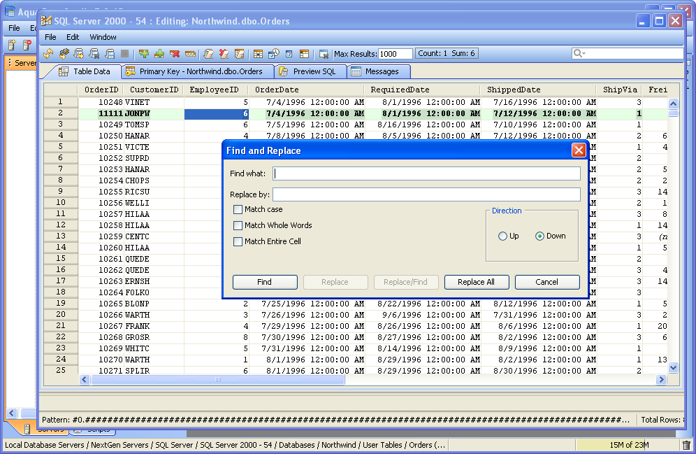 Find/Replace Options Find and Replace within the Table Data Editor functions similar to the Find and Replace of Aqua Data Studio's Editors. Regular Expressions cannot be used in the Find and Replace within the Table Data Editor.