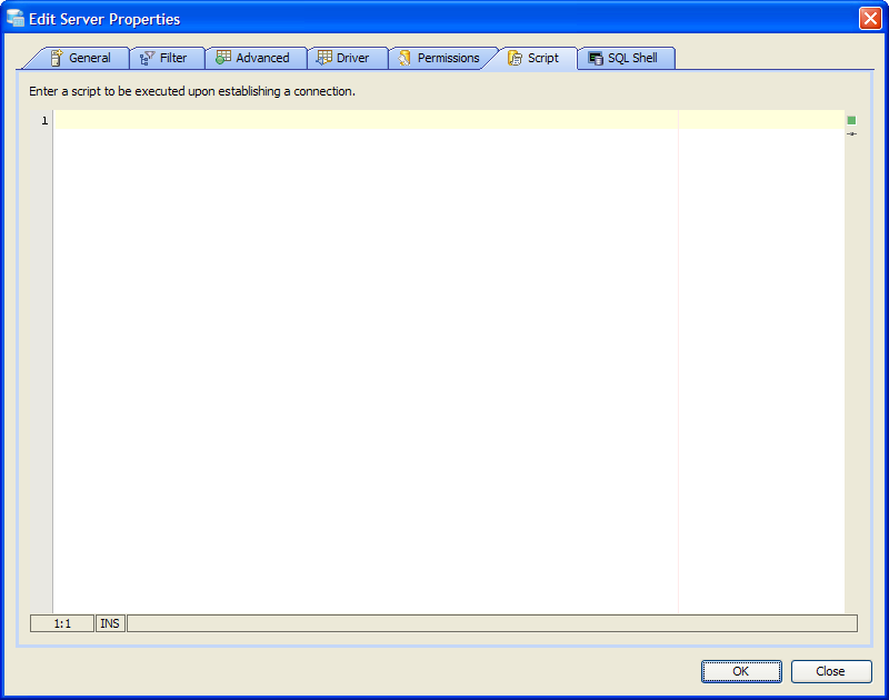 Edit Scripts in Server Properties in Aqua Data Studio: