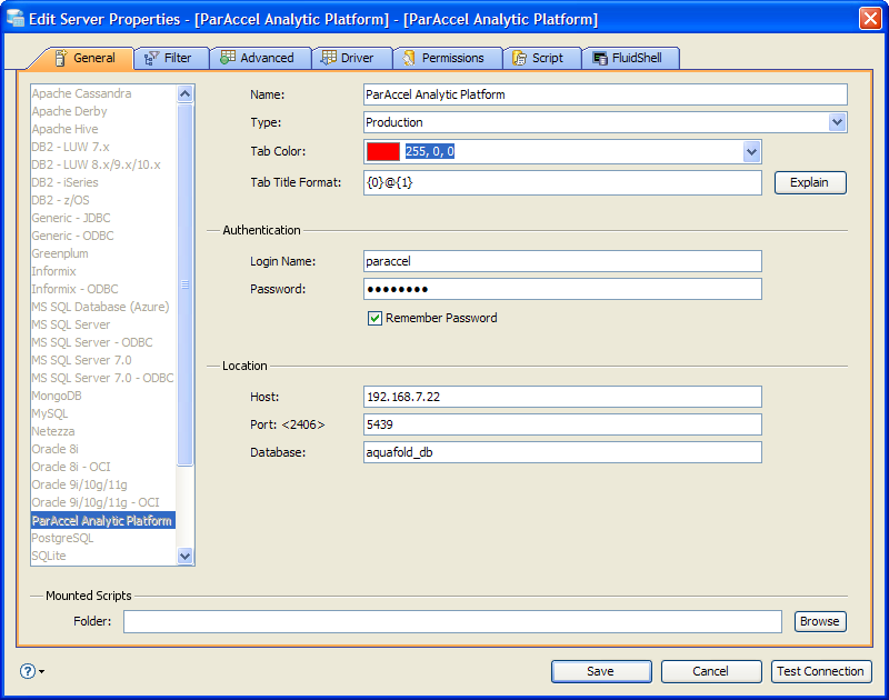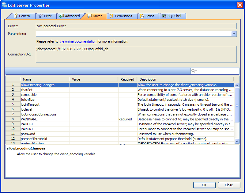 Edit the Drivers Properties to use Driver Parameters in Aqua Data Studio: