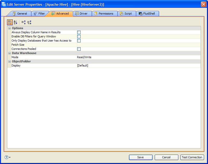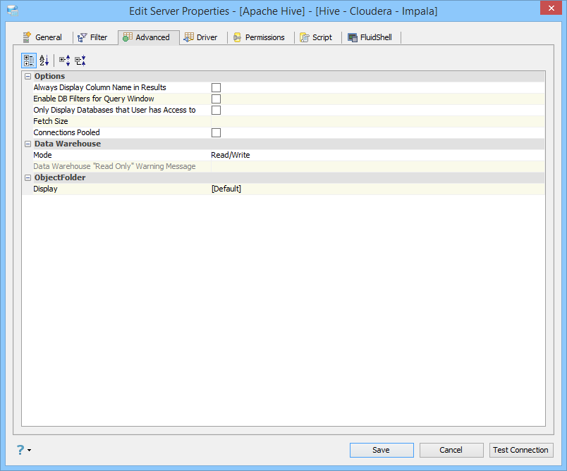 Edit the Server Properties to use Advanced Properties in Aqua Data Studio:
