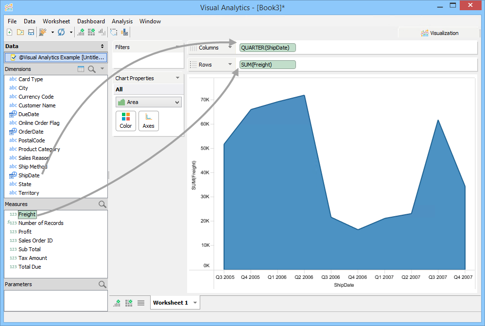 4. Drag Freight from Measures to the Rows deck.