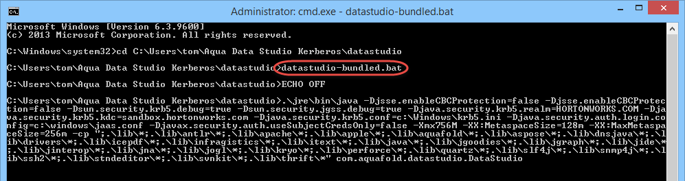 $ADS_HOME/jre/bin/java -Djsse.enableCBCProtection=false -Dsun.security.krb5.debug=true -Dsun.security.jgss.debug=true -Djava.security.krb5.realm=aqua-internal.com -Djava.security.krb5.kdc=kdc.aqua-internal.com -Djava.security.krb5.conf=/etc/krb5.conf -Djava.security.auth.login.config=/etc/jaas.conf -Djavax.security.auth.useSubjectCredsOnly=false -Xmx756M -XX:MaxPermSize=192m -cp $CLASSES com.aquafold.datastudio.DataStudio