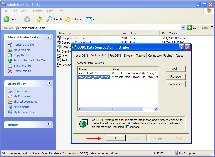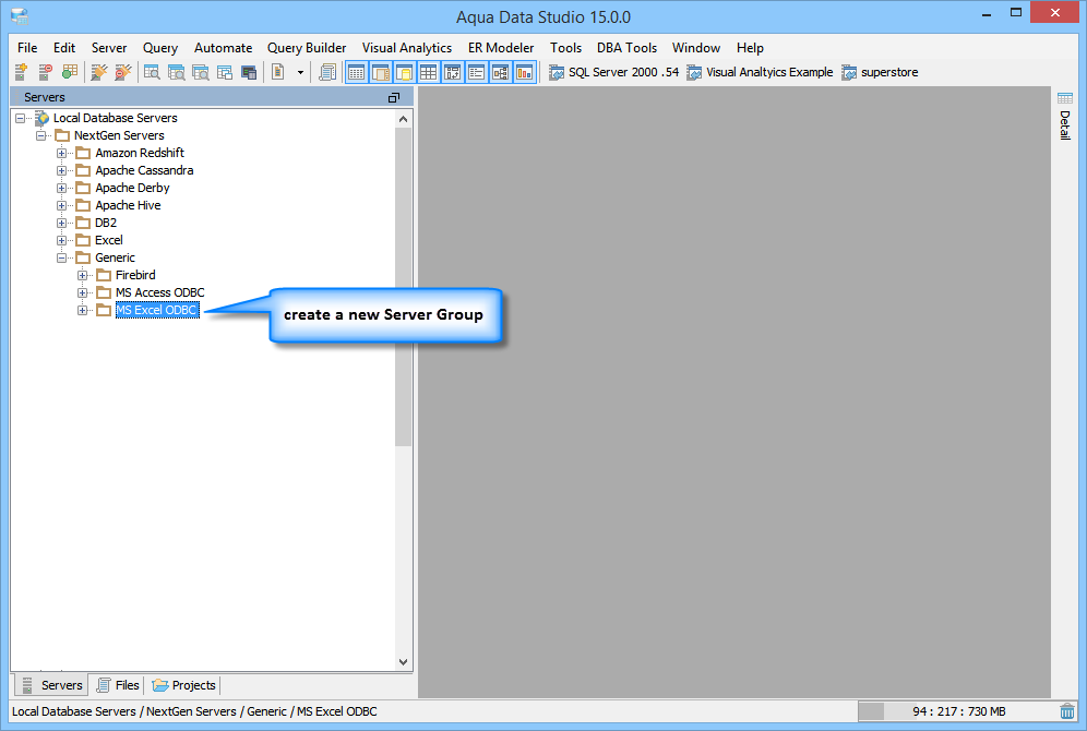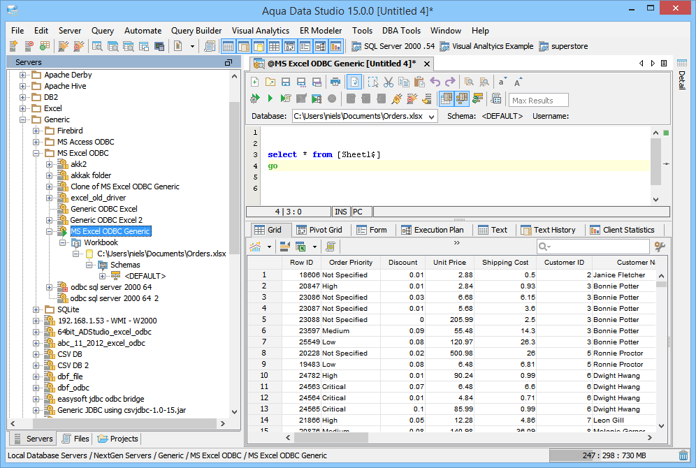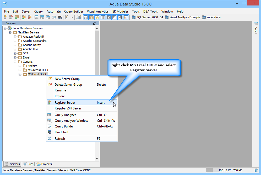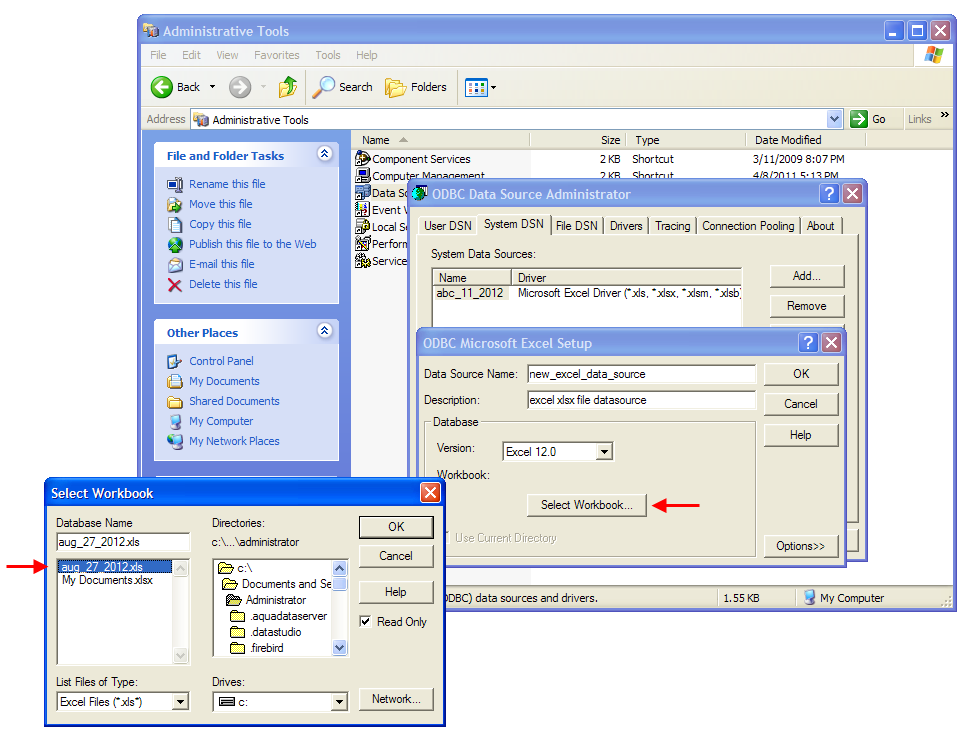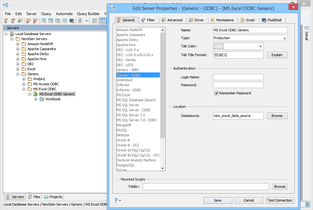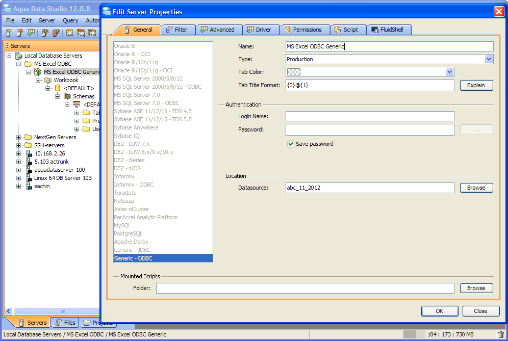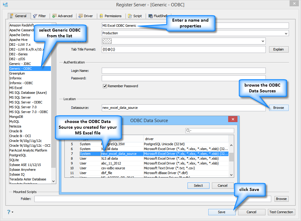 To connect to a Microsoft Excel ODBC Datasource using Aqua Data Studio Generic ODBC:
