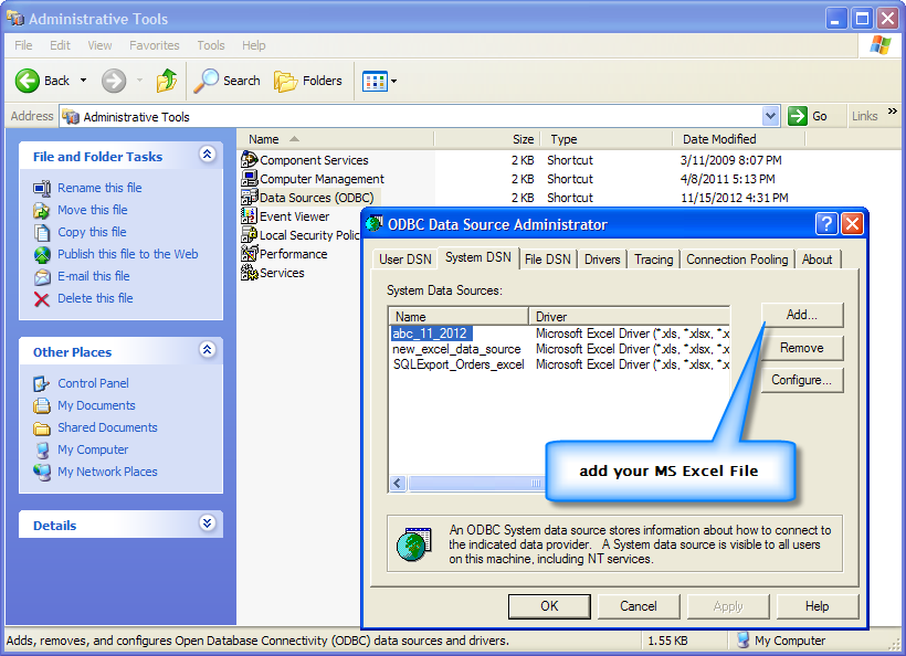 Add the ODBC data source |