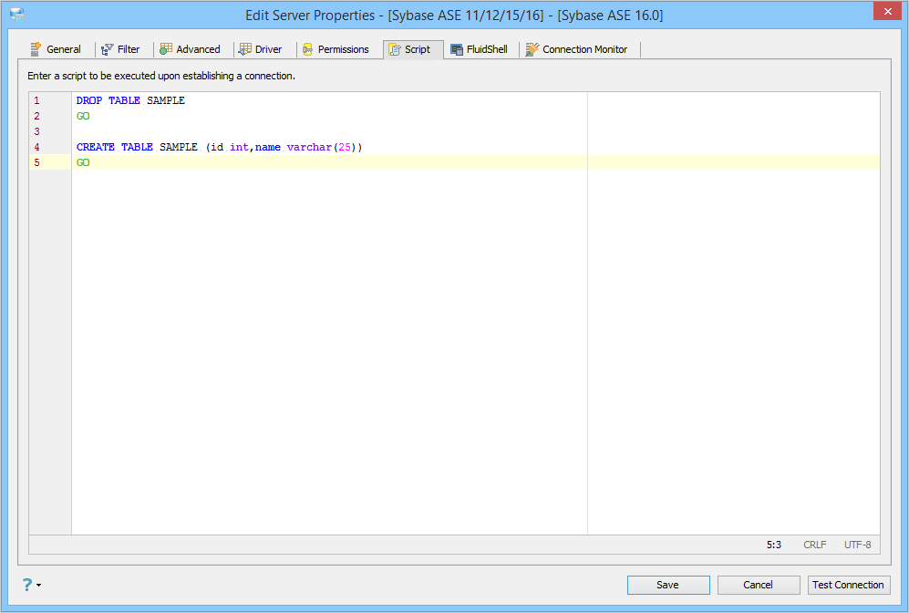 Edit Scripts in Server Properties in Aqua Data Studio: