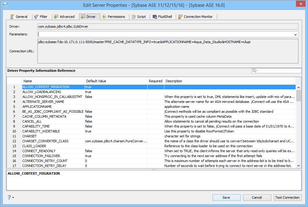 Edit the Drivers Properties to use Driver Parameters in Aqua Data Studio: