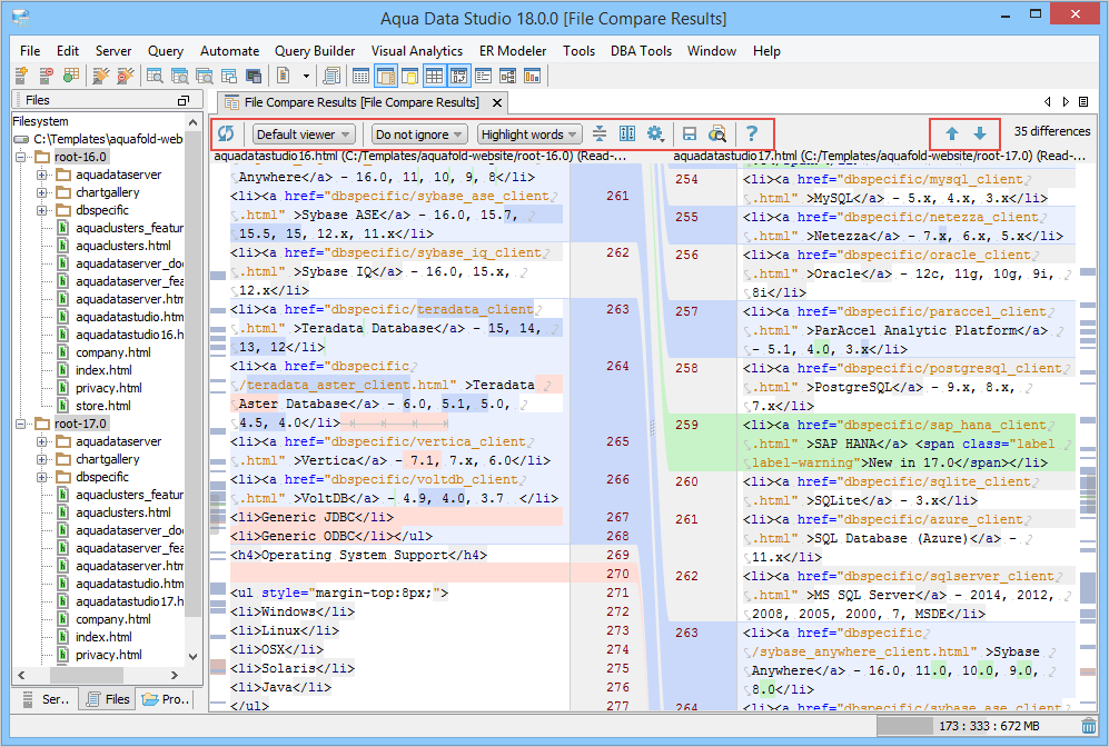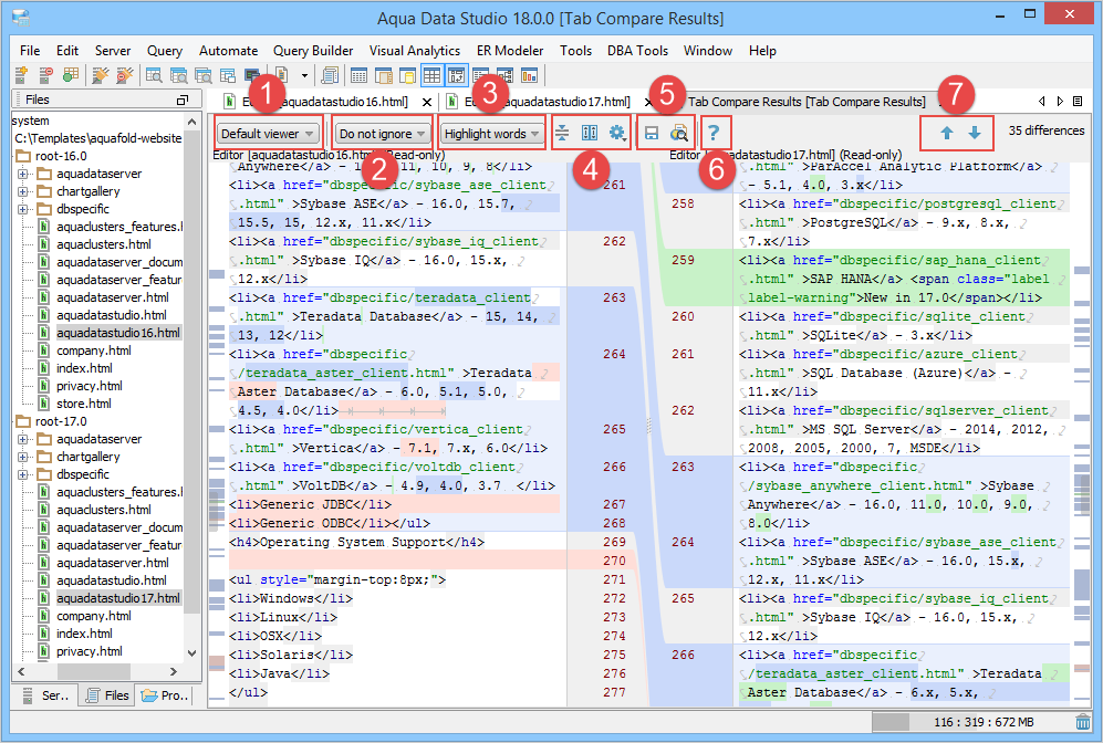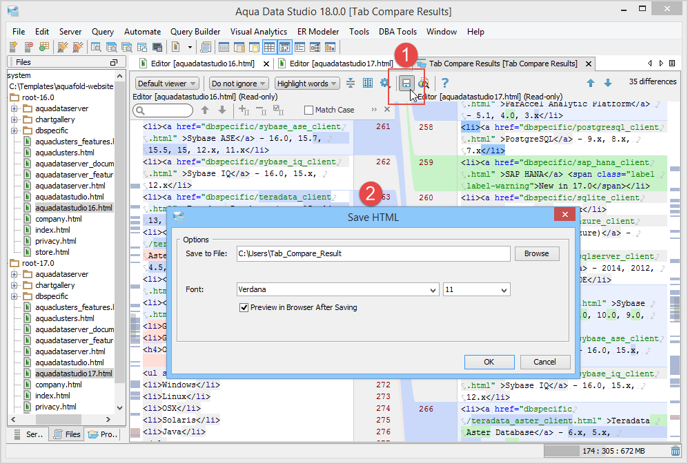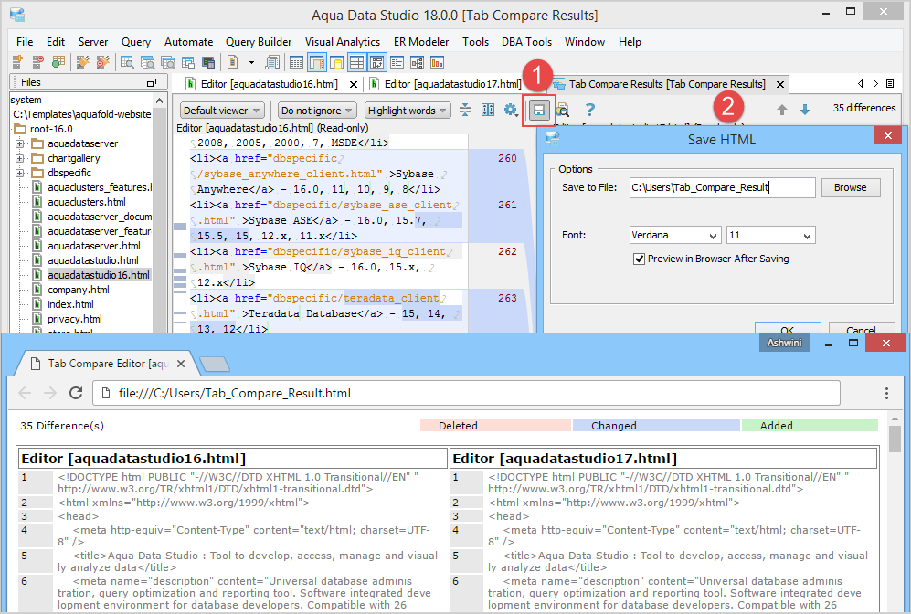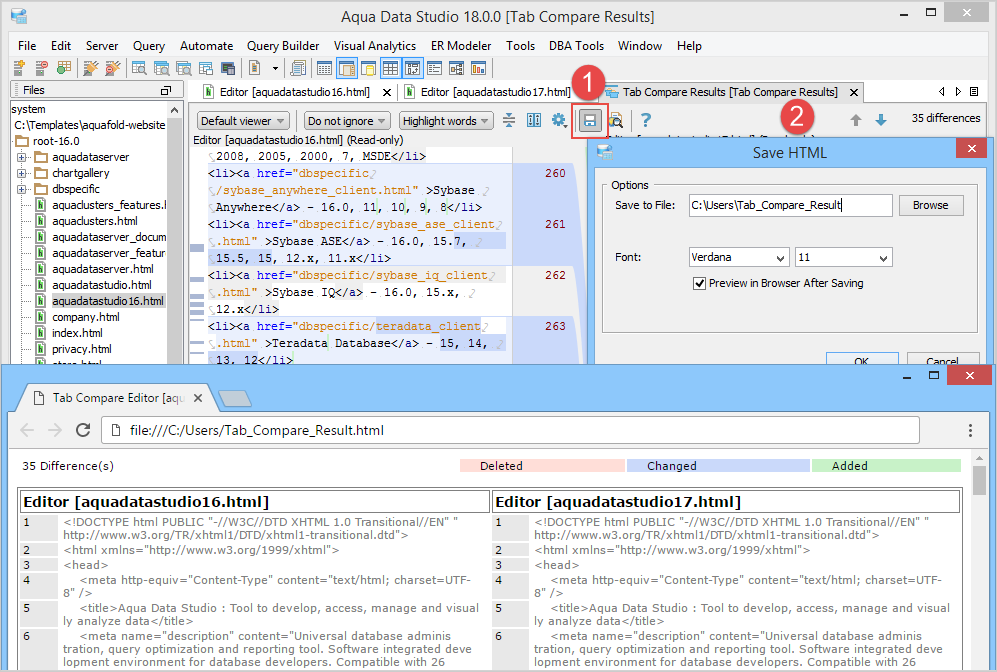Preview the saved comparison result in the HTML format. |