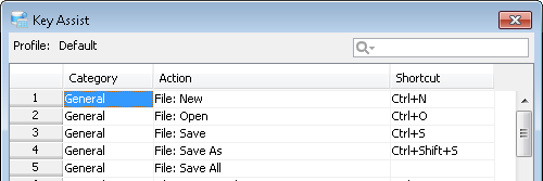 Key Assist - (Ctrl+Shift+L) The Key Mapping Assistant allows a user to quickly look up an action and find the corresponding key binding. Application - Keymappings - Default Application - Keymappings - Emacs