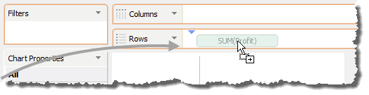 1. Click and drag Profit from Measures into the Rows deck.