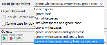 When you choose this option, the comparison engine performs a case insensitive comparison between the source and target scripts and does not distinguish between upper and lower case letters.