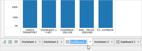When a new Dashboard is created, it appears in a new tab at the bottom of the Visual Analytics window.