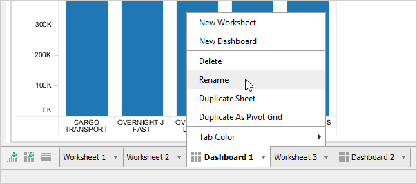 Right-click the Dashboard tab and choose Rename.