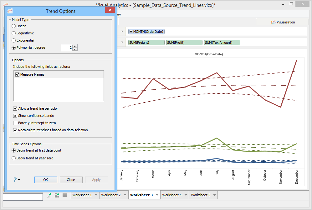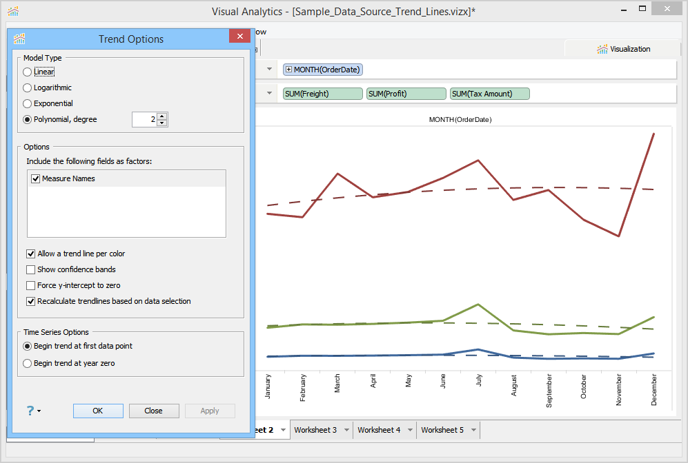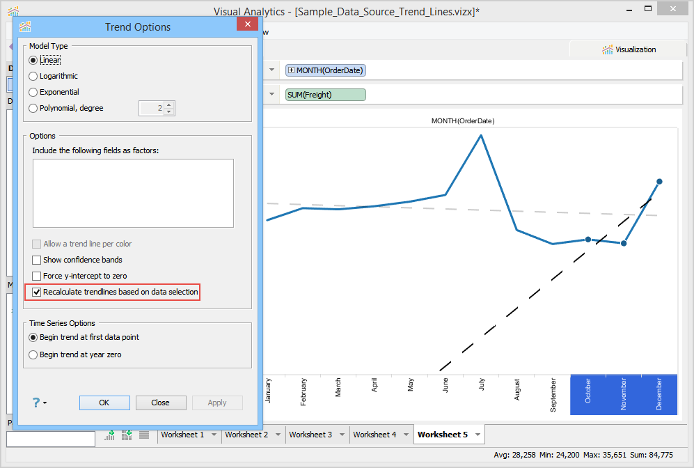 You can also control from where the trend line should start. In the Time Series Options area, you can set one of the following options: