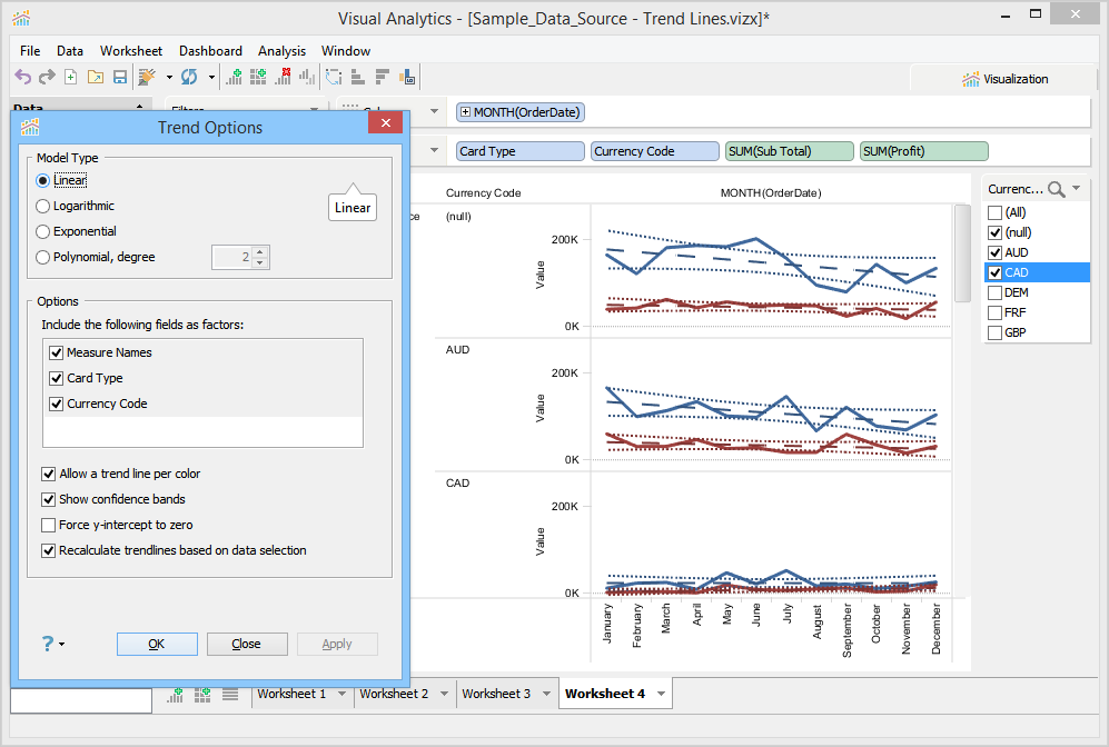 From this dialog, you can select the Trend Line Model Type as: