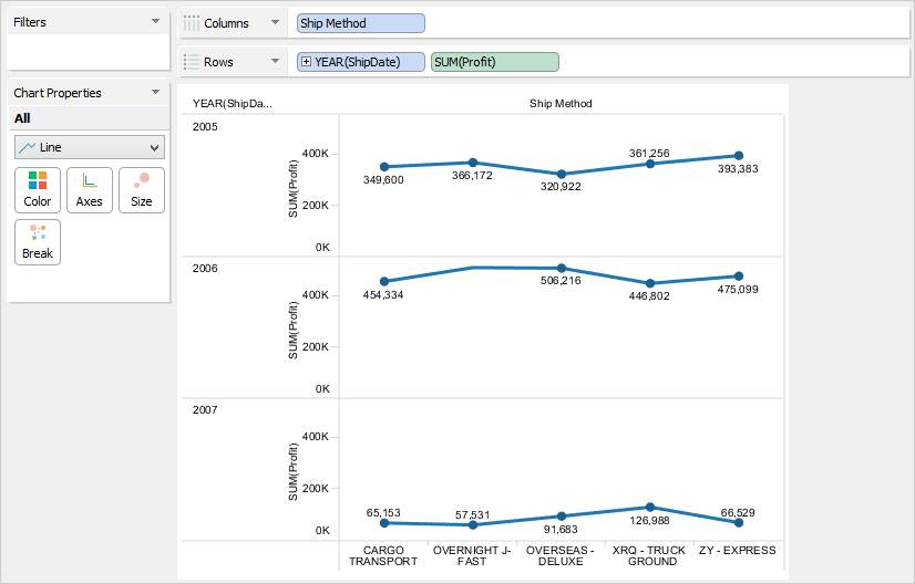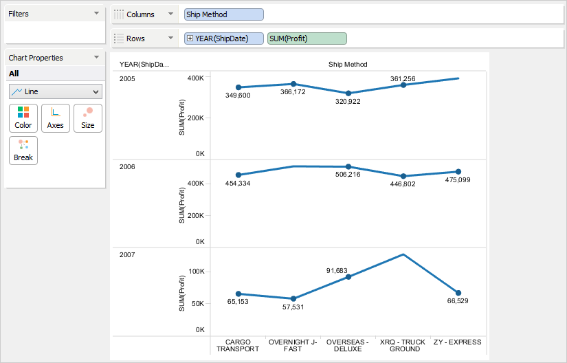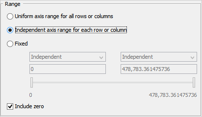 Visual Analytics sets an independent range for each row or column based on the minimum and the maximum values in the data.