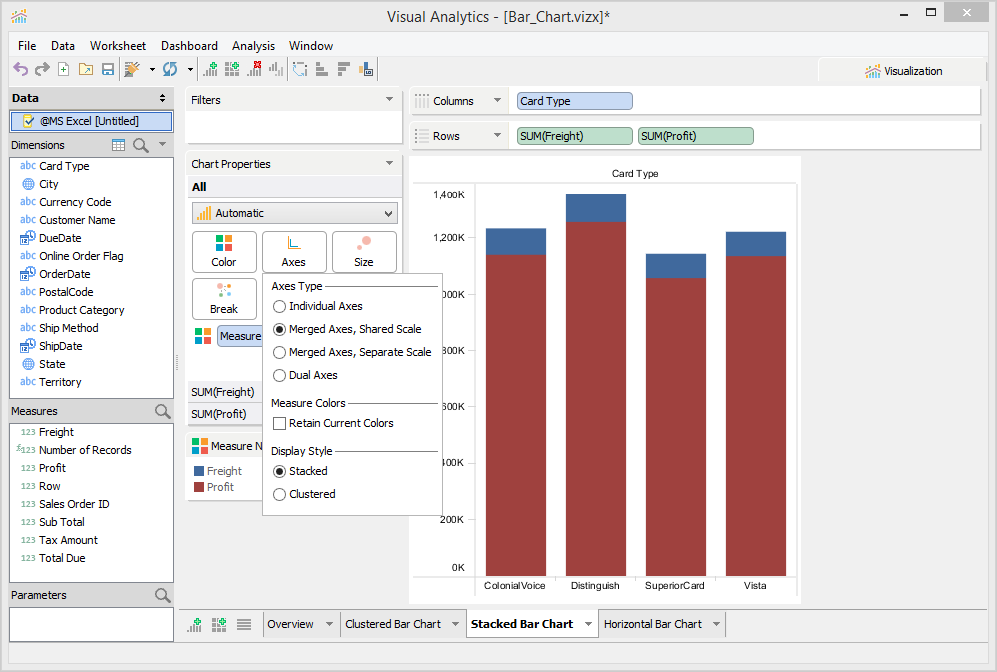 7. Select [Merged Axes] and [Stacked] in the Axes Properties dropdown.
