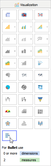 Bullet chart is a powerful way of comparing the actual value with a target value and provides a richer data display using much less space compared to dashboard gauges and meters.