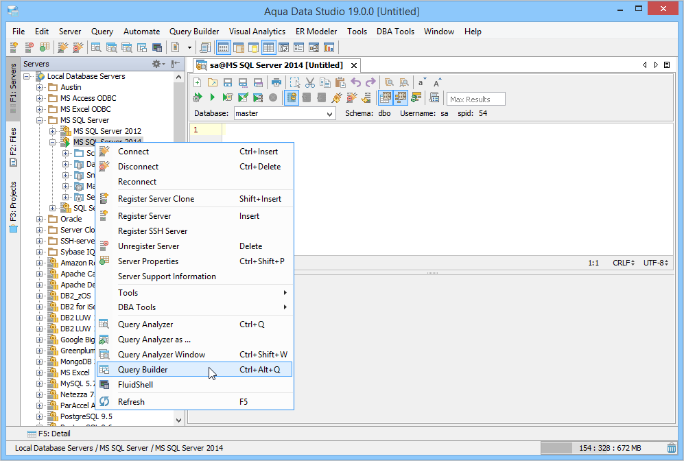 There are several methods of launching the Query Builder within Aqua Data Studio: