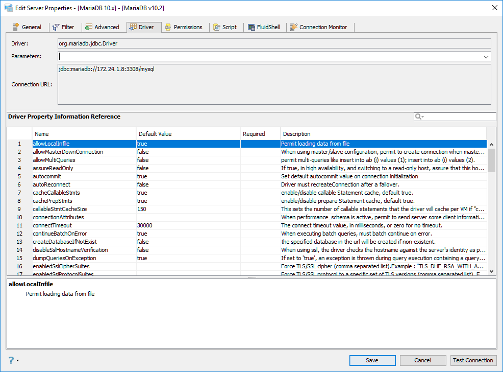Edit the Drivers Properties to use Driver Parameters in Aqua Data Studio:
