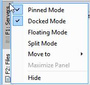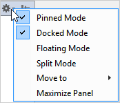 Pinned Mode is not available when panels are undocked or in the floating modes.