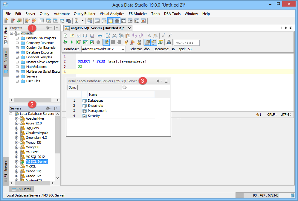 Aqua Data Studio provides several viewing modes that controls how its interface is displayed. There are four viewing modes –