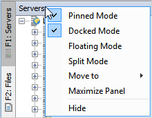 The panels are docked by default which means they are permanently attached to the editor. If you resize a docked panel, all the surrounding areas are automatically scaled to the new size. When you undock a panel, the panel overlaps the surrounding areas and covers the available space of the editor. An undocked panel can be resized without affecting the sizes of other areas attached to the panel. Undocked panels hide when the focus moves to a different area. To switch between the docked and undocked mode, turn the Docked Mode on or off.