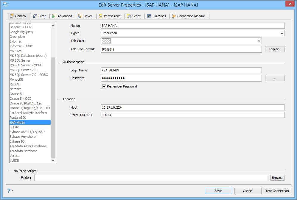 Before connecting to your server, make sure you have the appropriate driver for your SAP HANA version.