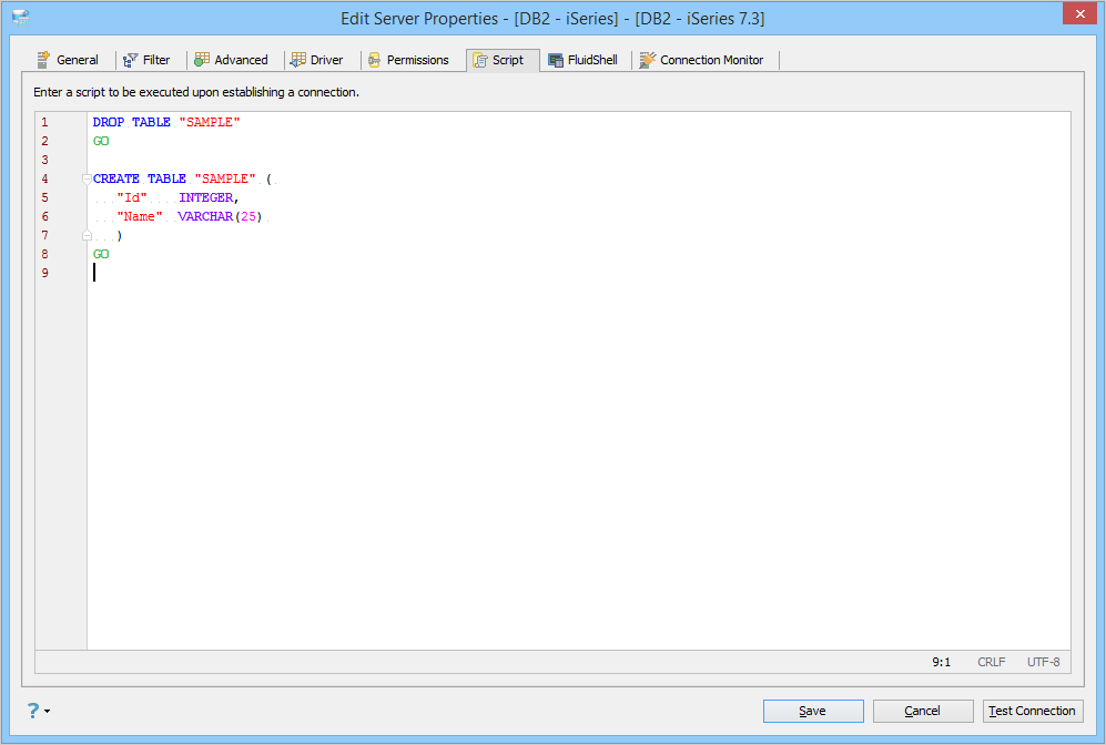 Edit Scripts in Server Properties in Aqua Data Studio: