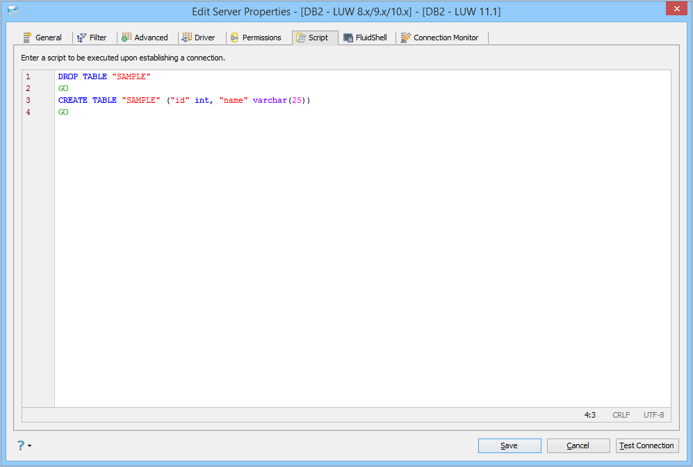 Edit Scripts in Server Properties in Aqua Data Studio: