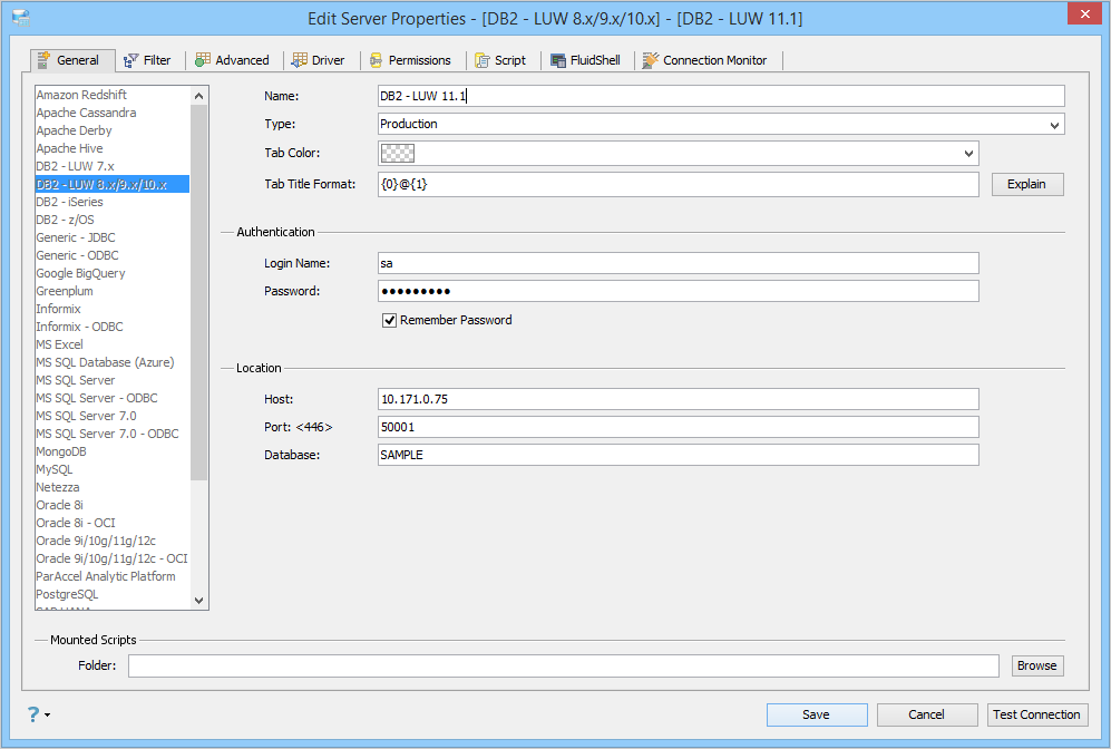 Before connecting to your server, make sure you have the appropriate driver for your DB2 version and fixpack.
