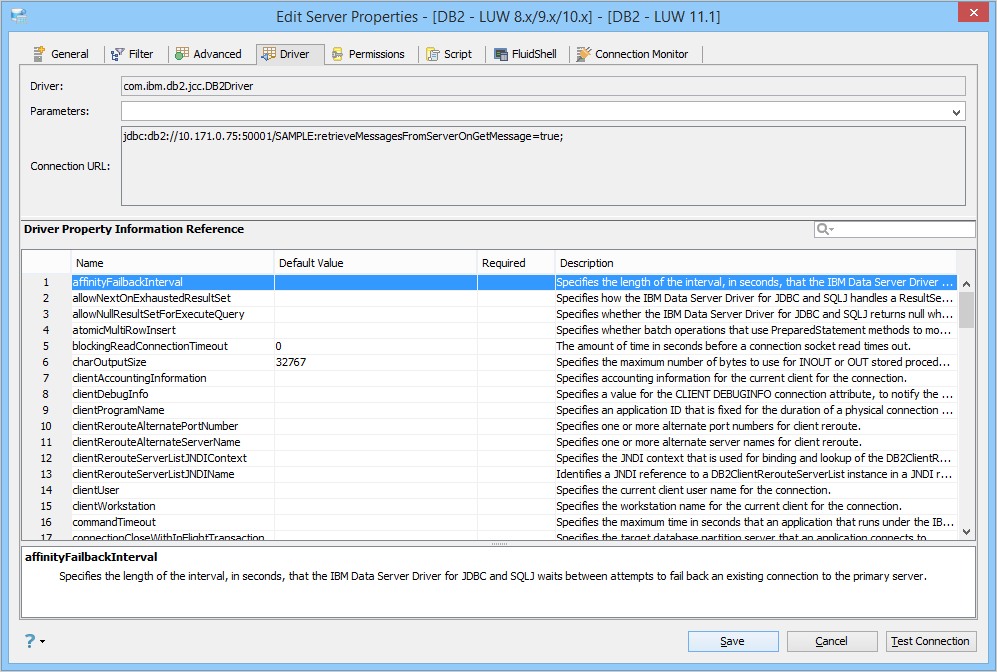 Edit the Drivers Properties to use Driver Parameters in Aqua Data Studio: