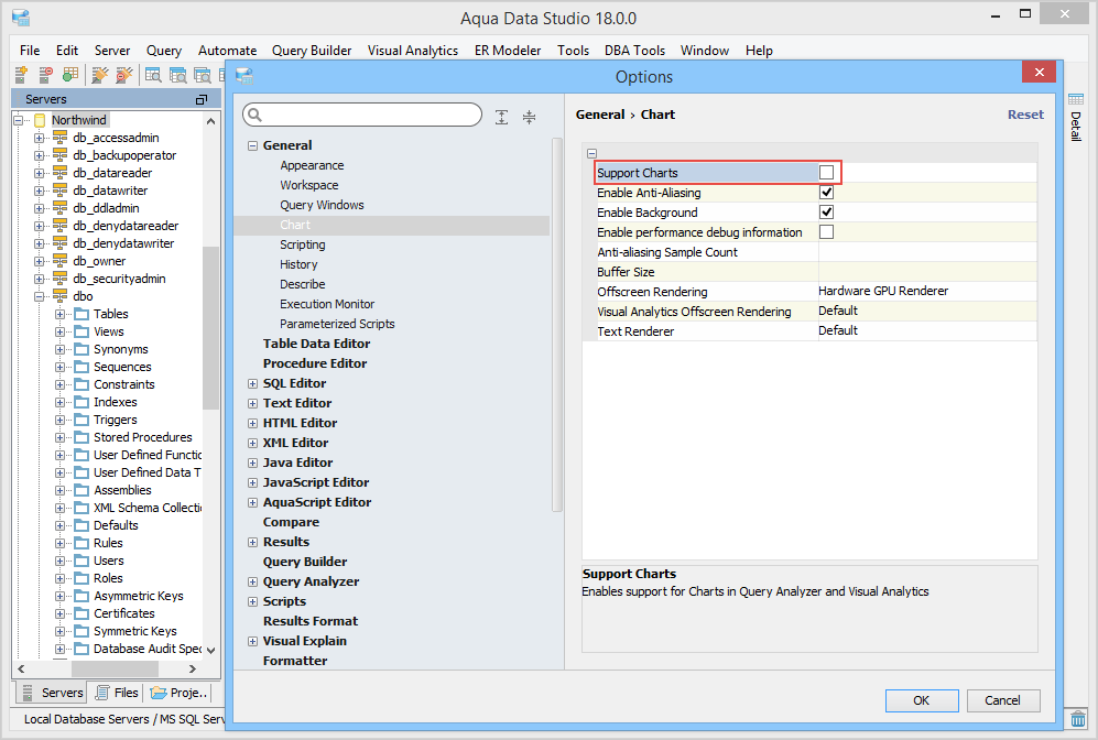 To improve Chart performance and stability there are several Chart Options within File > Options > General [Chart] including: