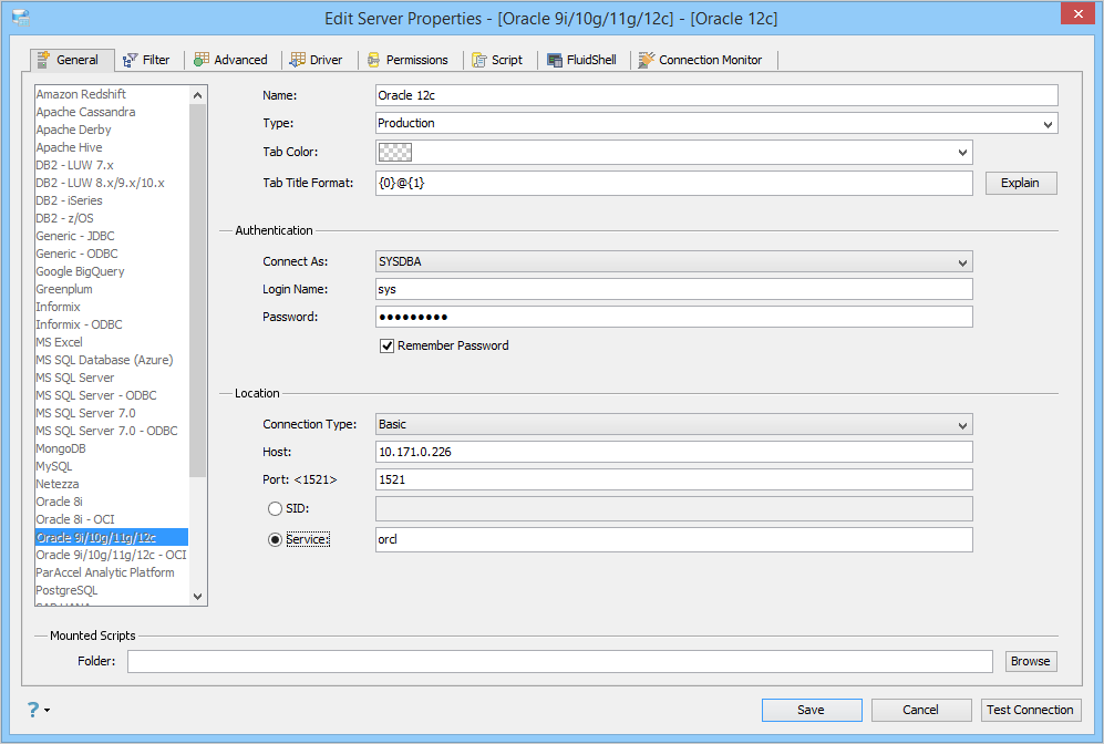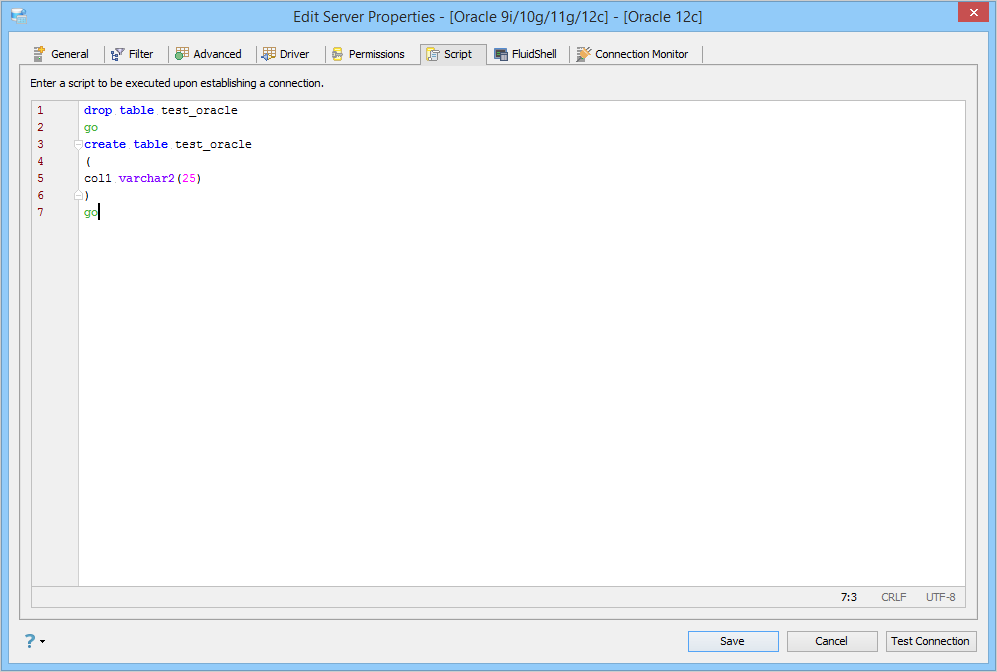 Edit Scripts in Server Properties in Aqua Data Studio: