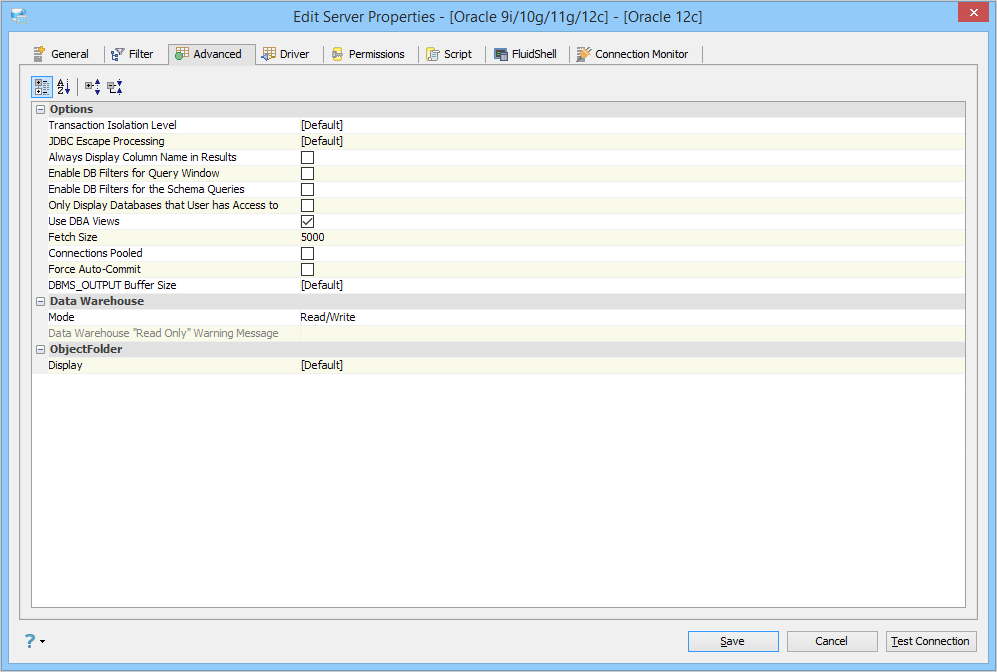 Edit the Server Properties to use Advanced Properties in Aqua Data Studio: