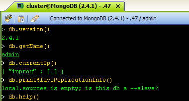 MongoShell provides an interactive JavaScript shell with nearly identical syntax and functionality to the native mongo shell. We built it on top of FluidShell in order to provide you the ultimate combined functionality of a Unix Shell with a native mongo command line. All your mongo shell commands such as DB methods, DBCollection methods, commands to administer and maintain your MongoDB clusters, replica sets and shards are all available. Type help inside MongoShell to get a full list of supported commands.