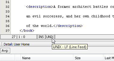 You can visually check what type of end-of-line sequence is being used in the current document: either LF ( Line Feed ) for Unix (UNIX), or CR+LF ( Carriage Return + Line Feed ) for Windows (PC).