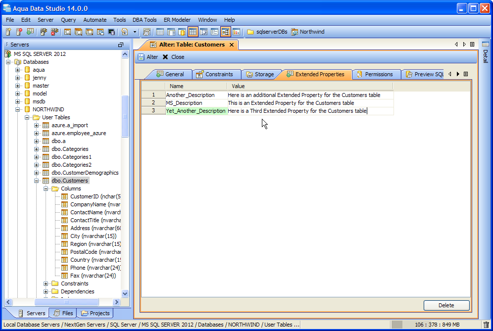 For Microsoft SQL Server 2005 and newer, we've added the ability to view, script and edit Extended Properties for Tables, Table Columns, Views, Synonyms, Indexes, Procedures and Functions. It's also possible to script comments in ER Diagrams as Extended Properties with our Entity Relationship Modeler.