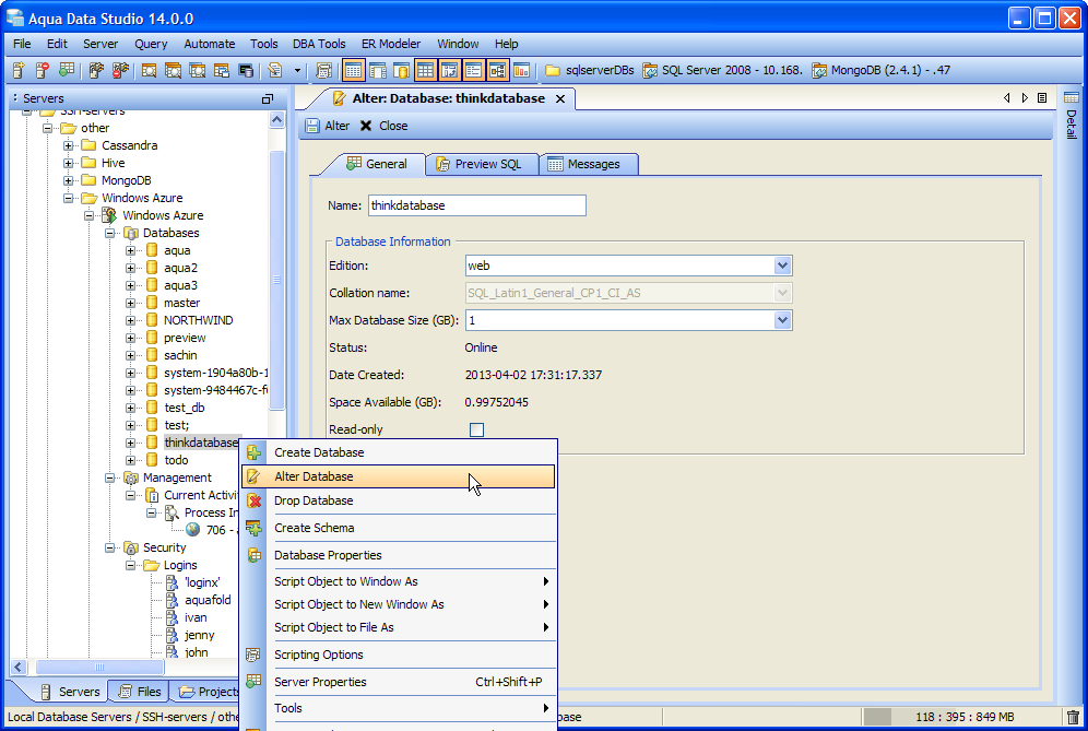 Our SQL Database (Azure) support now means you can connect to Microsoft's cloud-based data storage in the same way you've always connected to Microsoft SQL Server databases. You'll find functionality that you're already accustomed to including our Management and Security DBA Tools, our Import and Export tools, Query Builder, ER Modeler and much more.