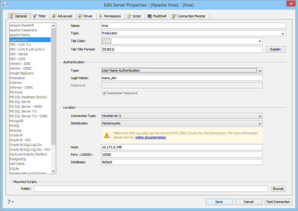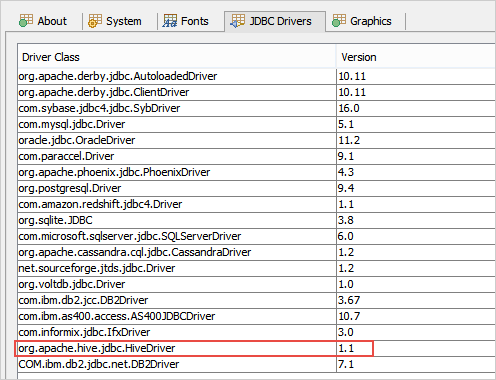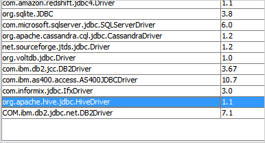 Apache Hive Driver has been upgraded to 1.1 and supports all existing Apache Hive features in Aqua Data Studio.