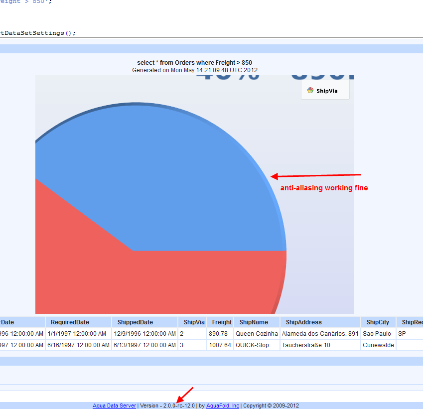 Pie-charts are now properly antialiased if rendered in 3D-mode, but are not anti-aliased in 2D mode ( AQChartProperties.setView2D(true) ; ) . Is it supposed to work on 2D, too ? ( I guess charts are rendered without using OpenGL if mode is set to 2D ).