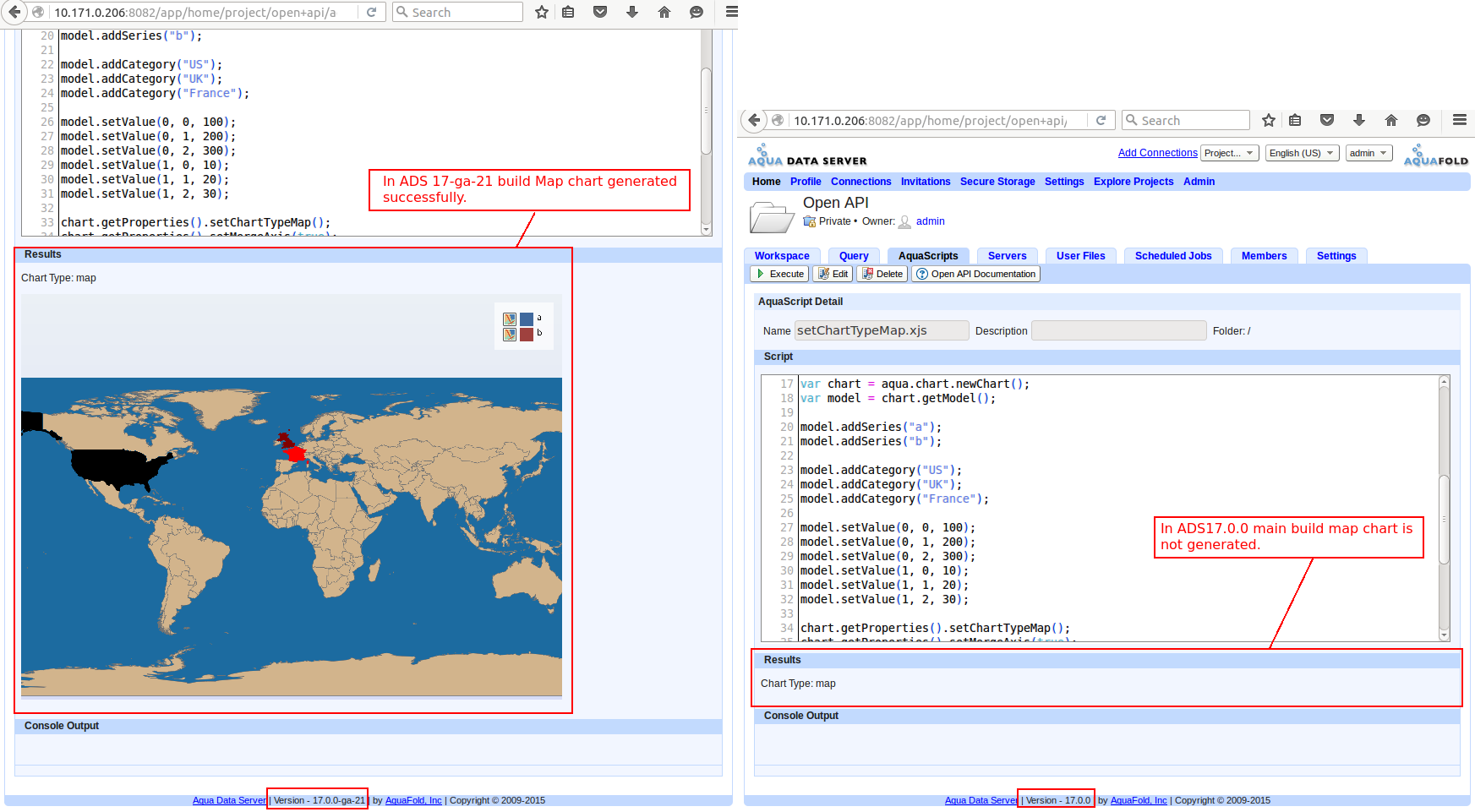 In AD Server 17.0.0-ga-21 build map chart generated successfully. But in Main AD Server 17.0.0 build map chart is not generated.